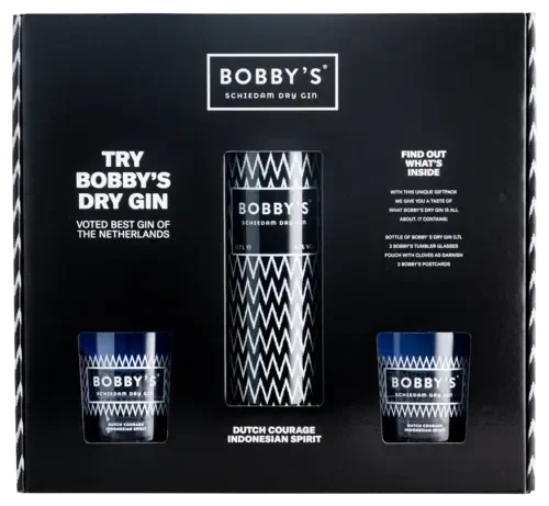 Bobby’s premium dry gin. De unieke combinatie van Schiedamse ginkruiden zoals jeneverbes, venkelzaad en koriander, en traditionele indonesische specerijen als citroengras, kruidnagel en kaneel. Een kruidige gin in een opvallende fles op basis van de receptuur van opa Jakobus, alias Bobby. Onderscheidend door de unieke perfect serve met een schijfje sinaasappel en drie kruidnagels.