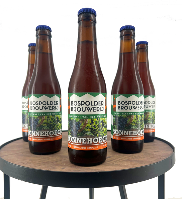 Een unieke grape ale, gebrouwen met druiven van de historische kwekerij Sonnehoeck in Kwintsheul De frisse fruitigheid van de druivenrassen Frankenthaler en Alicante combineert mooi met de zachte mout en een vleugje hop. Vol van smaak, elegant en met 7% alcohol toch goed doordrinkbaar